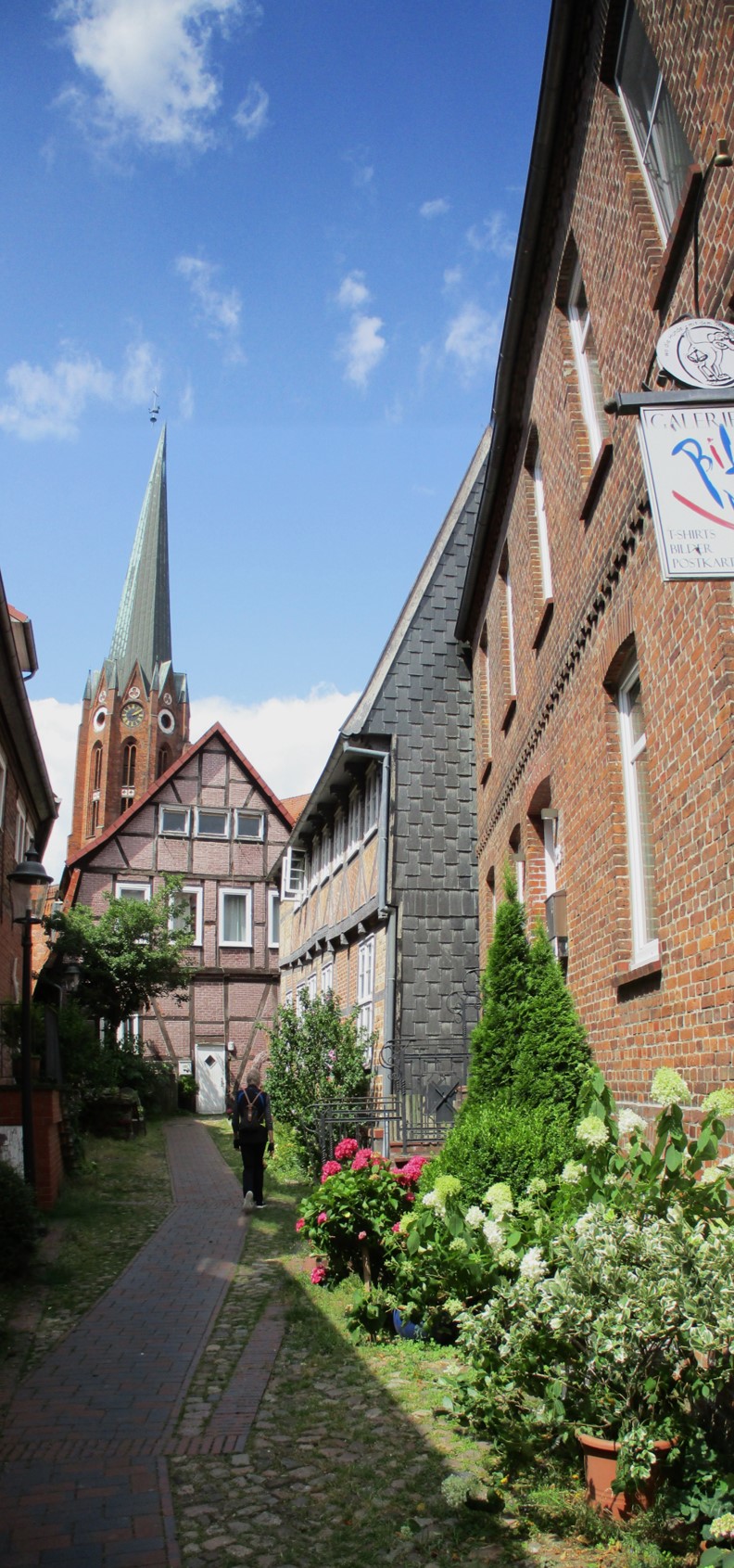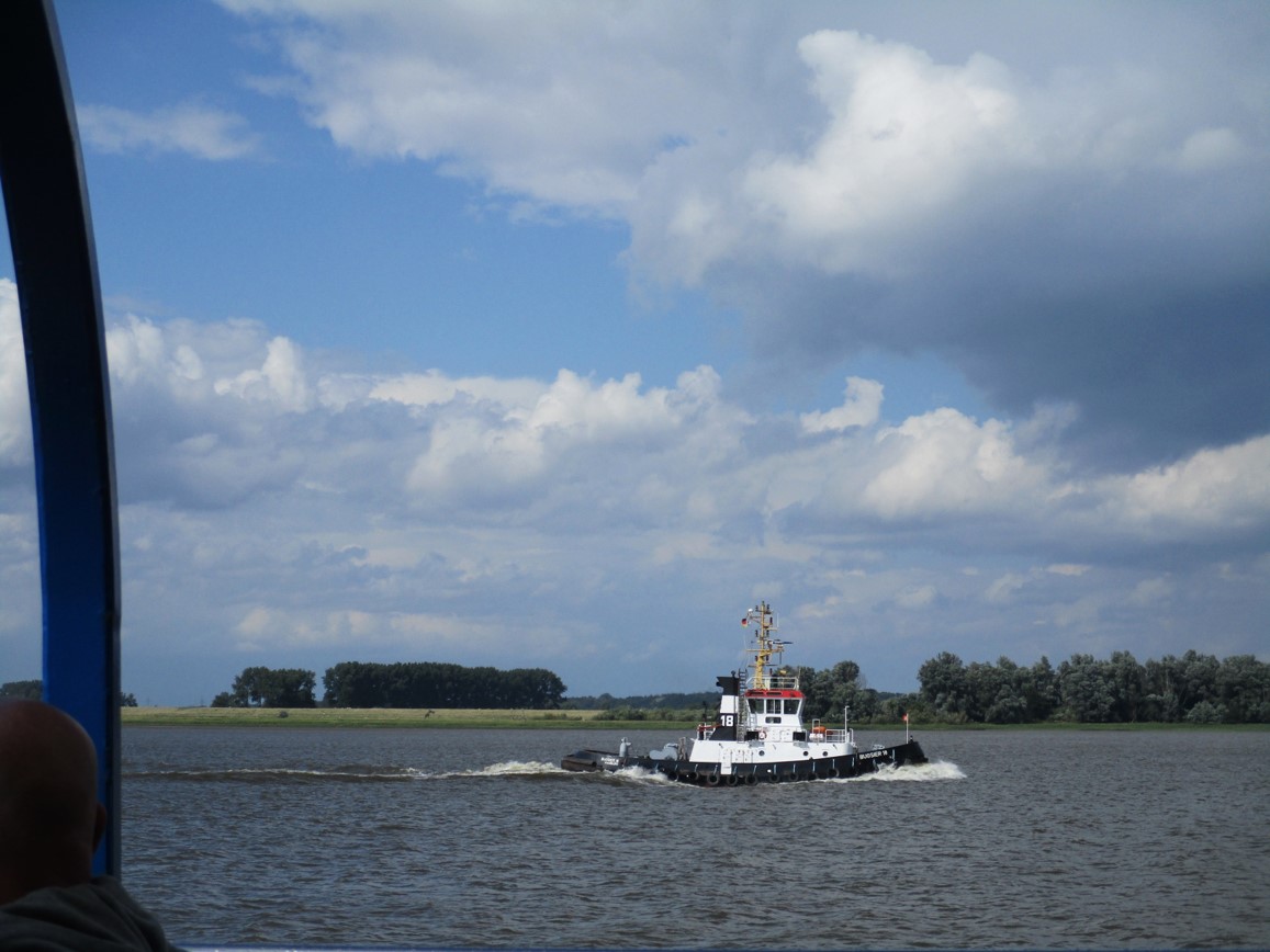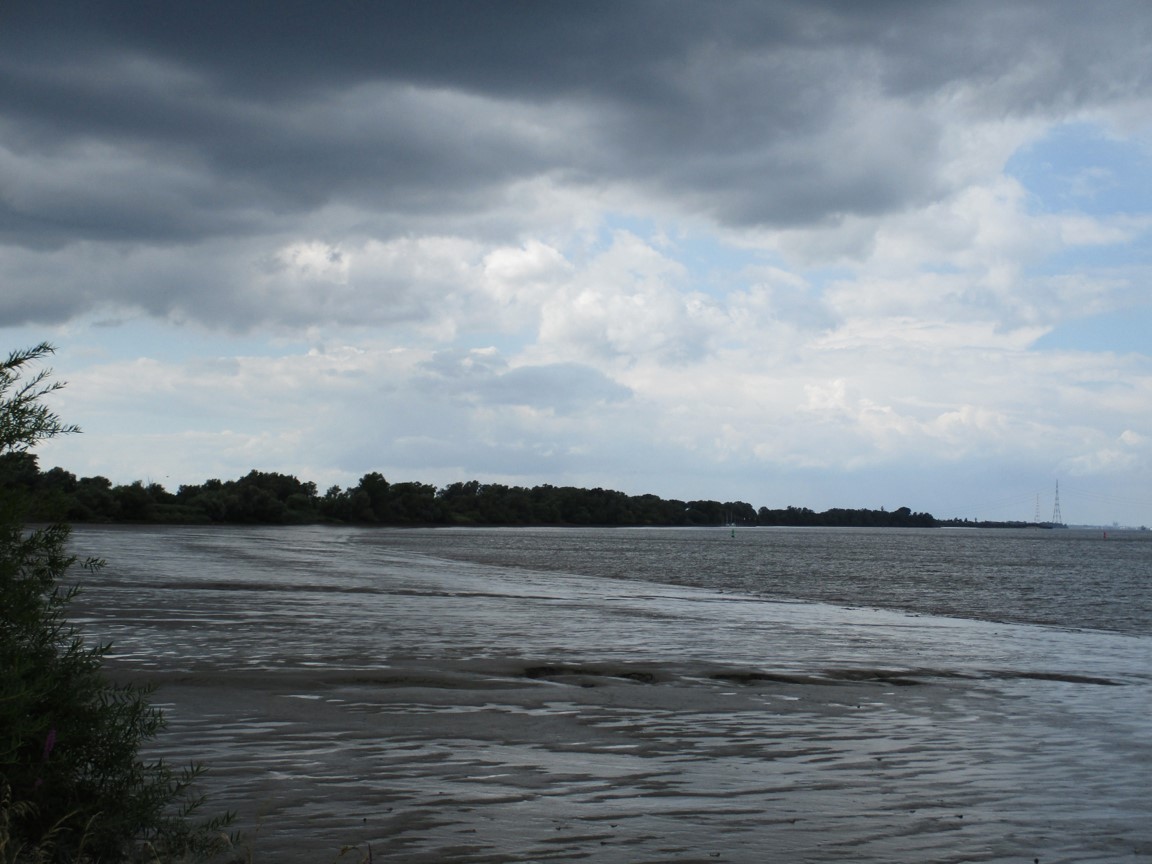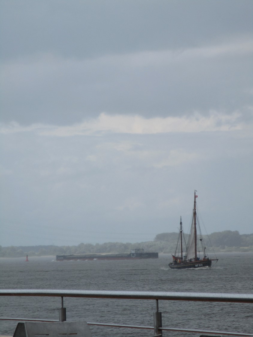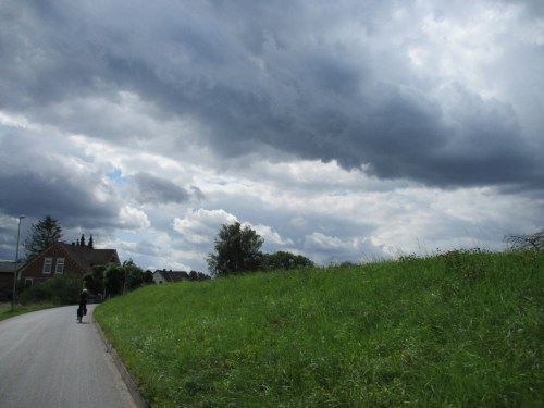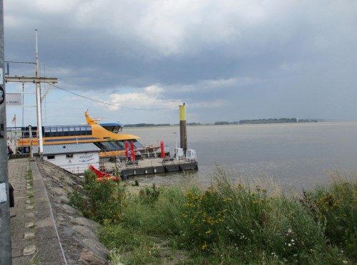 Vom brodelnden Wetter war ja vorn und in etlichen der vorigen Beiträge zu lesen. So entschloss ich mich, nicht wie vorgesehen in Pinneberg zu Mittag zu essen, sondern angesichts von 45 bis 60 Minuten anstehender Rückfahrt eine geeignete Stätte in Wedel anzuradeln. – Das stellte sich als segensreich heraus.