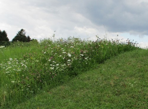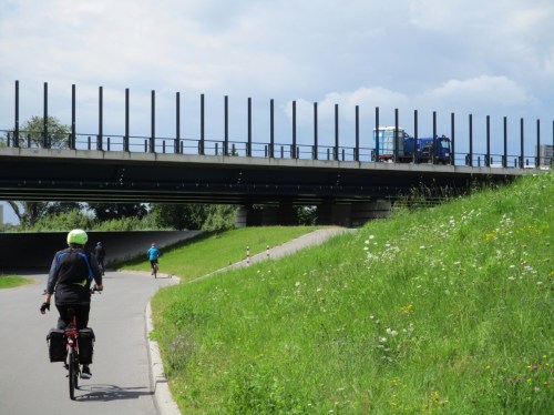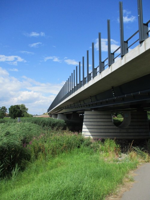 Die als Otterpausenstätte vor Brückenunterquerung angebotenen Kiesdepots sind, unter anderem, mit Blutweiderich, Großem Weidenröschen und Dost von allein besiedelt.