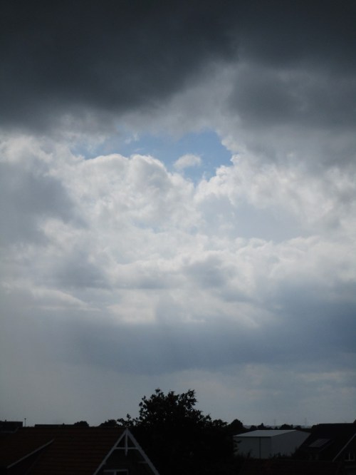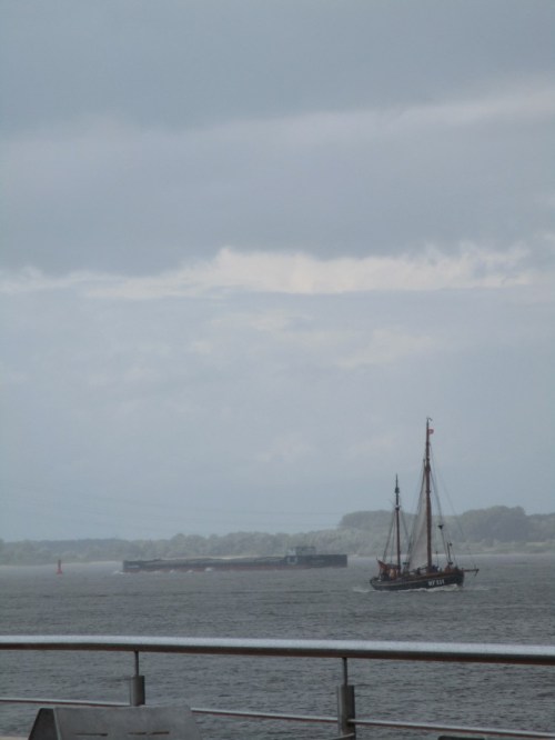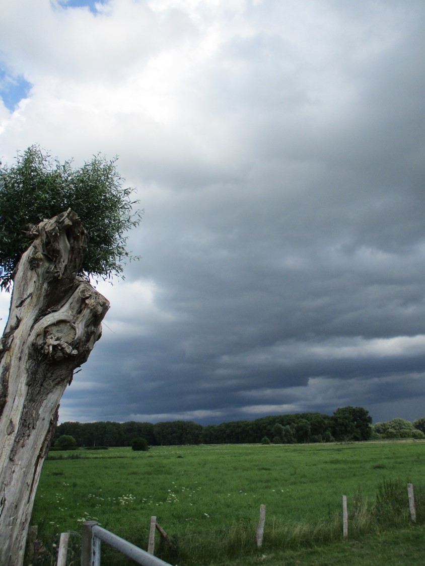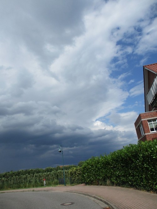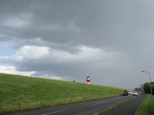 Schön im Trockenen konnte ich mir beim Essen ansehen, was mich nach Essen in Pinneberg auf offener Strecke erfasst hätte – ordentlich Schlagregen (Die dunkle Optik trügt. Das Etablissement ist, draussen wie drinnen, freundlich.).