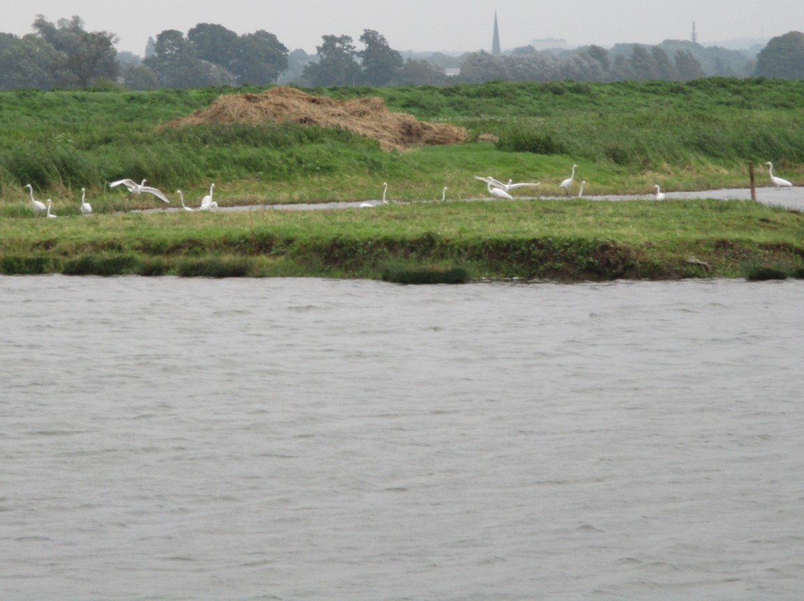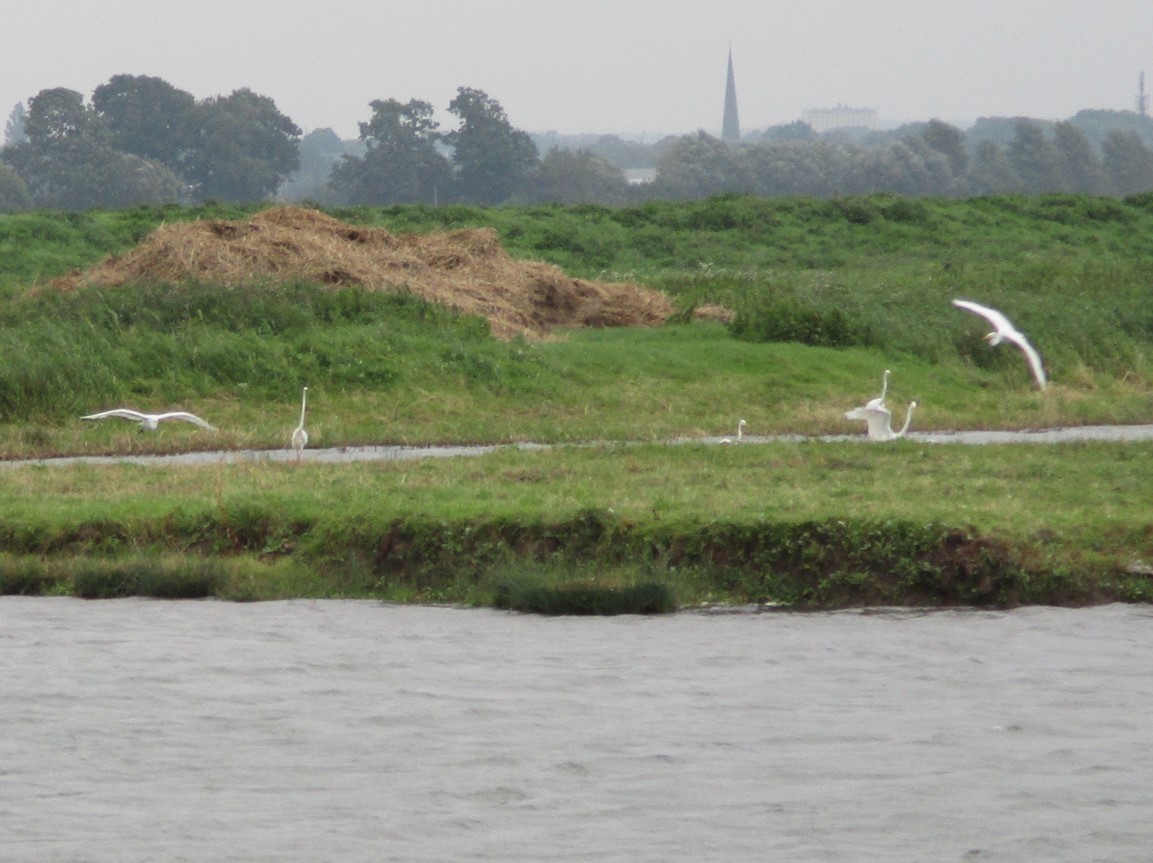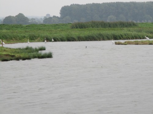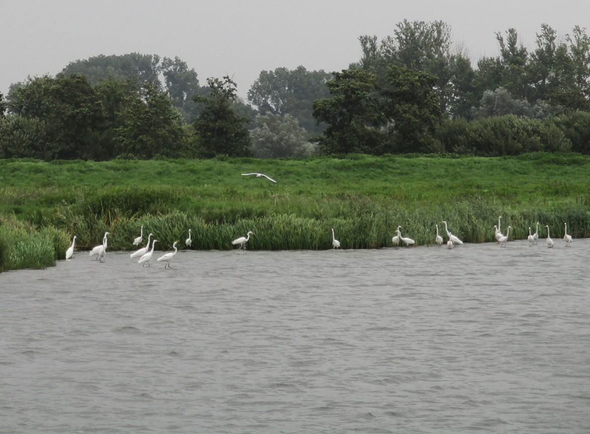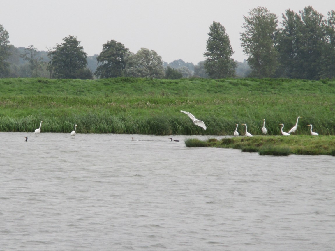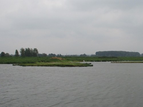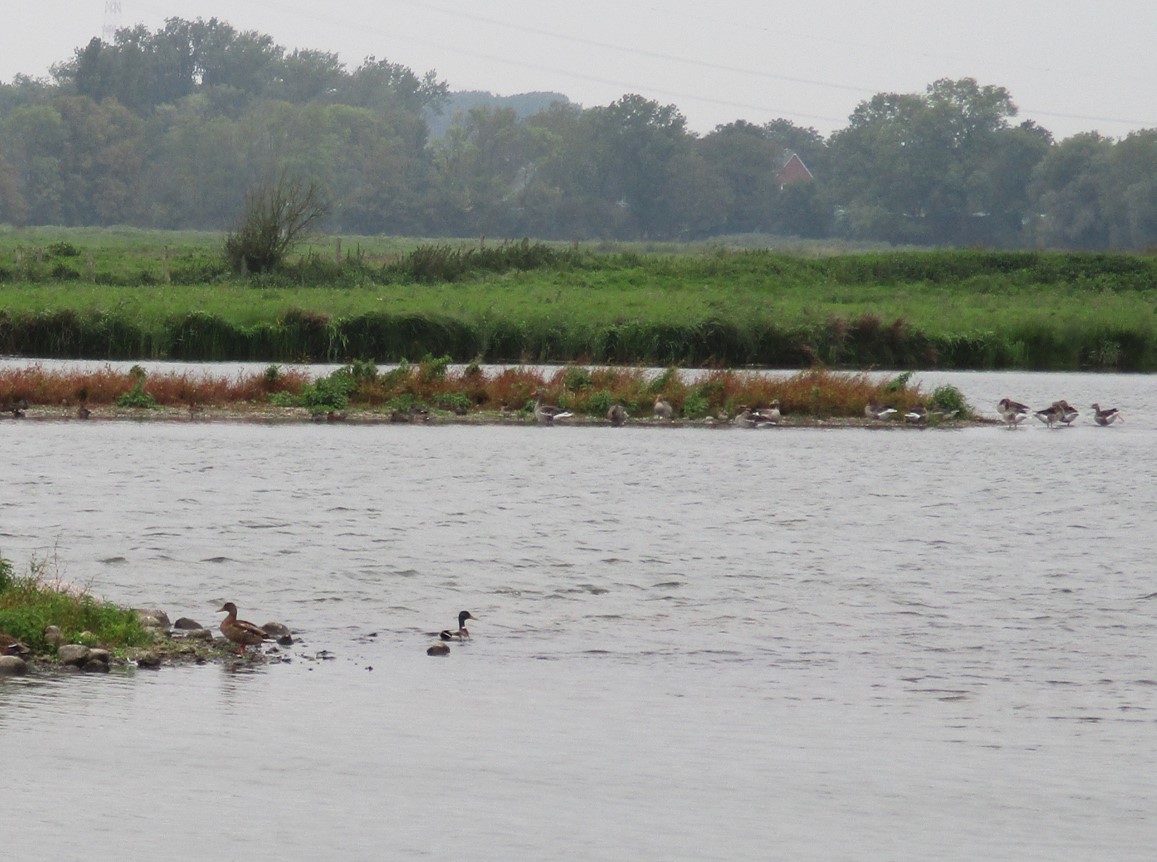 Wo erforderlich, wird aus dem geschütteten Depot eine kleine Ufersicherung gegenüber angelegt, ein Unterwasserströmungslenker (schräg GEGEN die Strömung, zum beidseitigen Uferschutz) geformt.