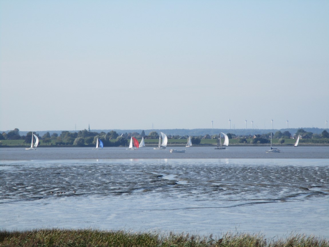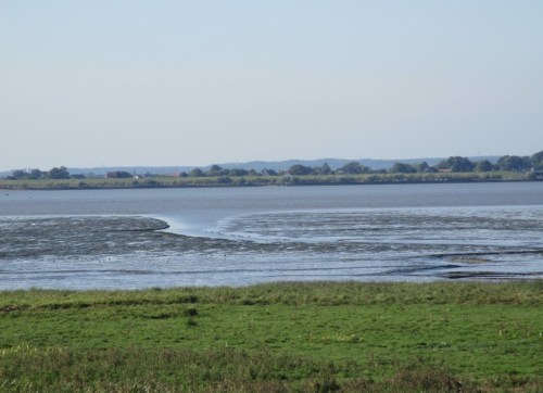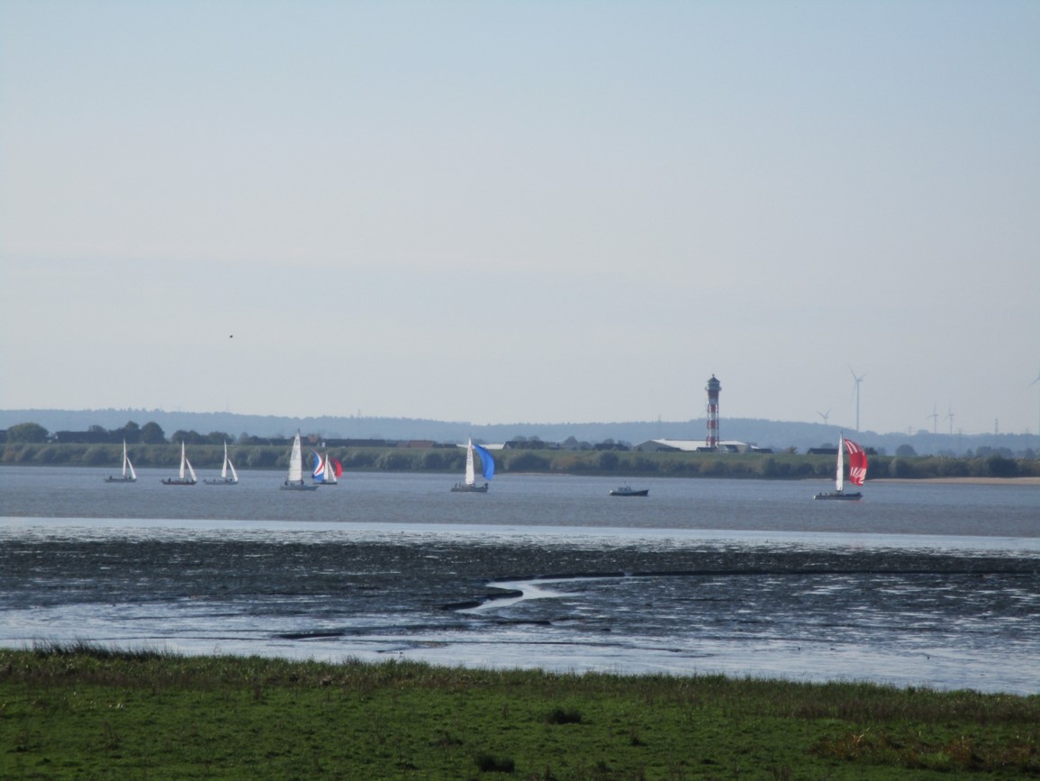 Auf der Krone des Elbdeichs querab der NABU Vogelstation – weithin sichtbar, ein Zeichen der Zugvogeltage.