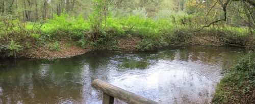 Immerhin begleitet hier ein standortgemäßer Baumsaum das Flüsschen.