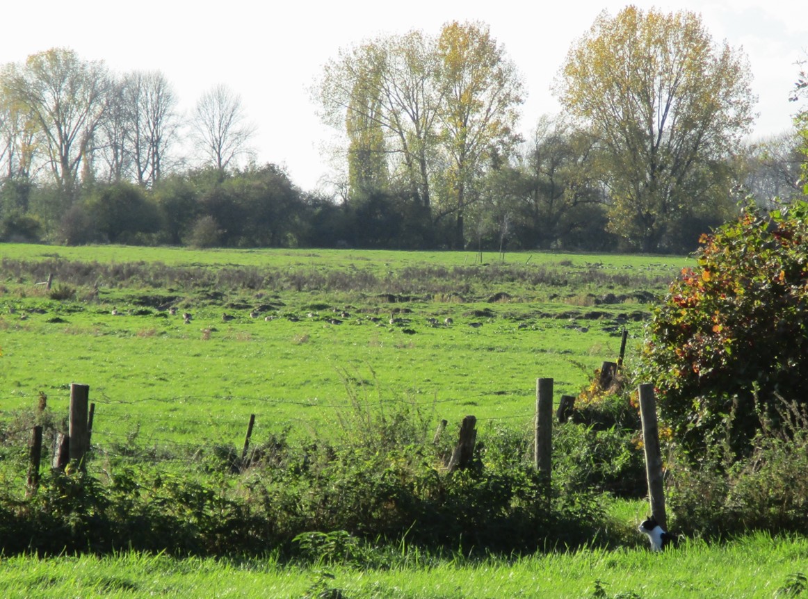 Es ist recht ruhig am frühen Nachmittag, Rehe wechseln über die Fläche (nicht fotografiert), eine Katze lässt sich, wie ich, die Sonne auf die Nase scheinen.