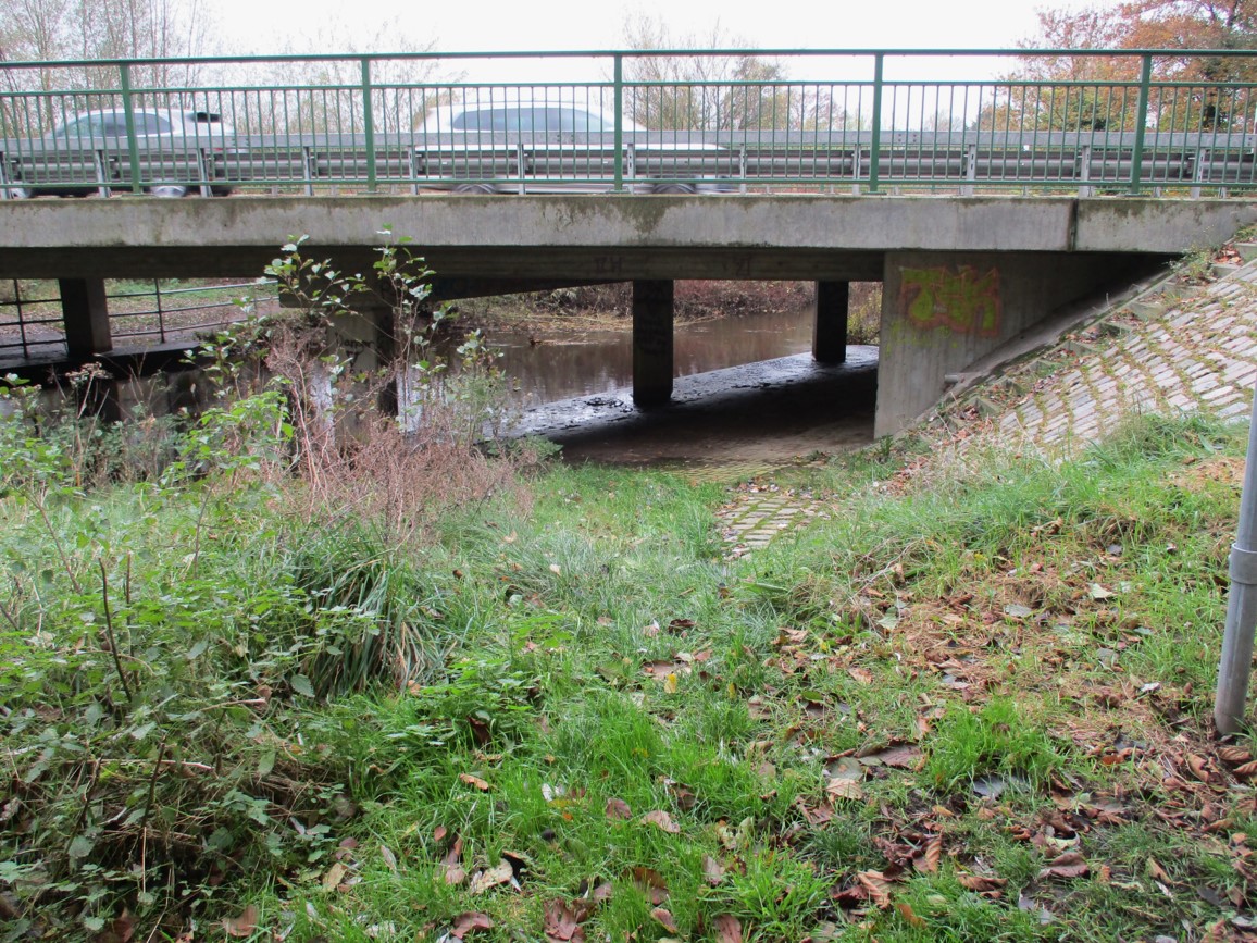 Bei Rückkehr vom Spaziergang auf dem Krückauwanderweg, vgl. voriger Beitrag, zeigte sich die für Hochwässer und Otter günstige Situation der Brücke Wittenberger Straße. Breite Freiräume beiderseits geben amphibischer und terrestrischer Fauna jede Möglichkeit, zu queren, ohne über die Straße zu müssen (platsch –> platt!).