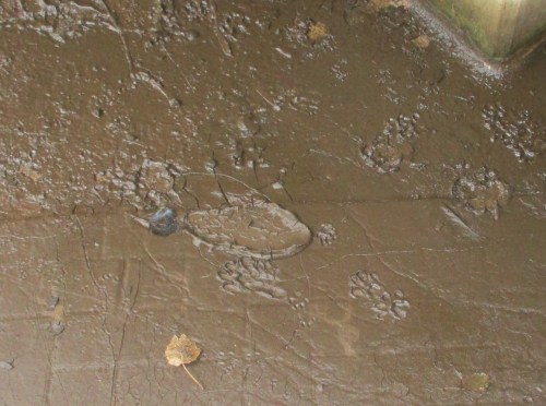 Hier nun sinnieren wir hin und her, ob da – neben kleinen, spitzen Rattenspuren – 4 kleine Finger vom Iltis stammen. Oder sollte da ein Jungtier Otter „Igitt, glitschiger Schlamm!“ auf Zehenspitzen herumspaziert sein? – Manche Fragen bleiben offen.