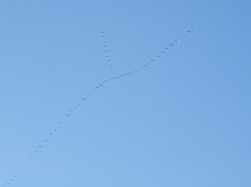 Bei solch zunehmendem Geschehen, zahlreiche, große Schwärme ziehen hoch über uns hinweg, offenbar nicht rastend in der Wedeler Marsch, scheint der Winter (jedenfalls im Osten) näher zu rücken.