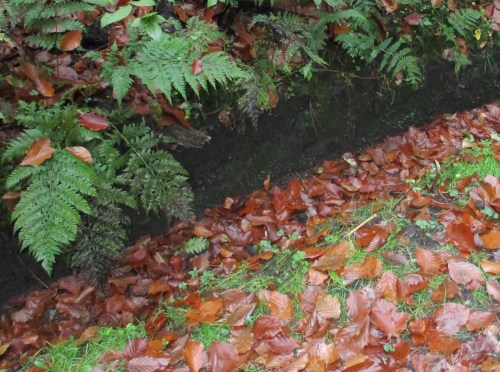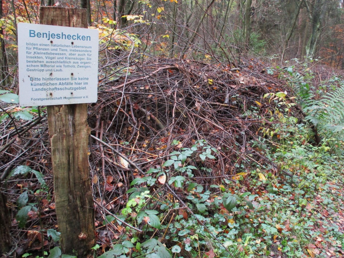 „Benjeshecke“ – Na ja, entlang unterschiedlich alter Partien ist nicht ein Busch, nicht ein Baum durchgewachsen.