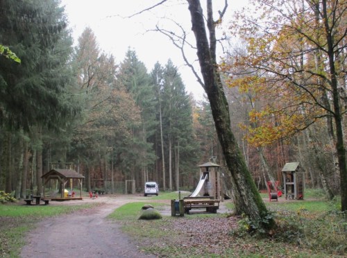Mittendrin, ein Waldspielplatz. – Na ja, eigentlich einer, wie er auch mitten in einem städtischen Baugebiet stehen könnte.