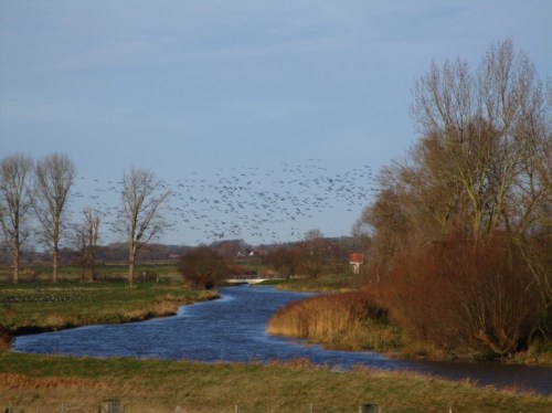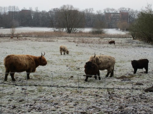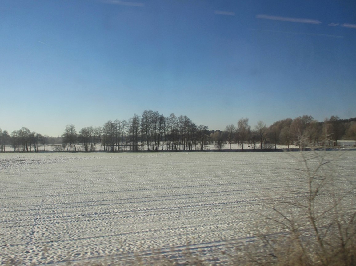 Brandenburgs Landschaft bot sich als leicht verschneites Winterland. Pferde, Rinder, Schafe, Rehe, Gänse, ein Fuchs erfolgreich eine Maus erbeutend, tauchten kurzzeitig im Blick auf.