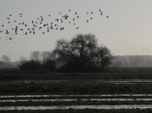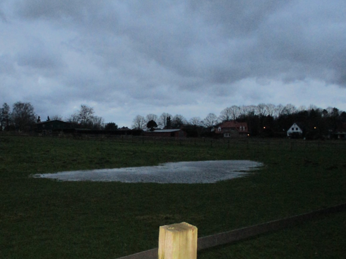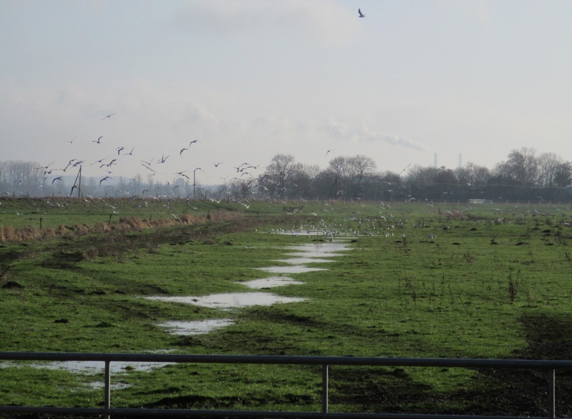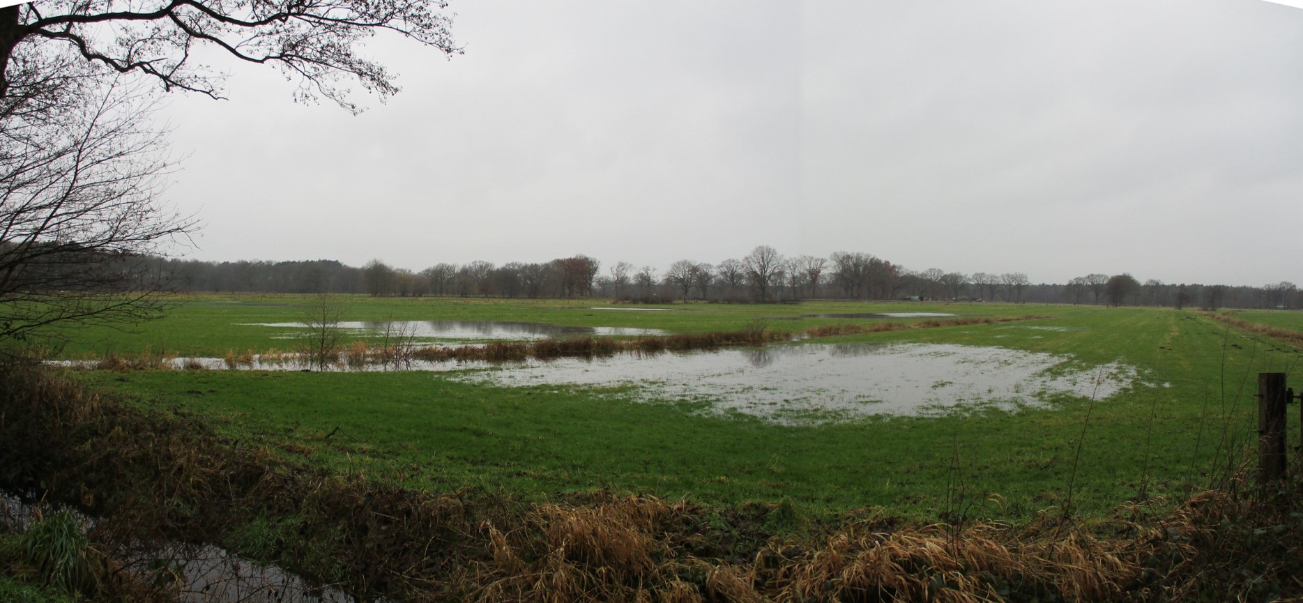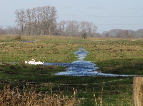 Das ist die neulich bereits mit Graugänsen vorgestellte, gut mit Wasser angestaute Ausgleichsfläche.