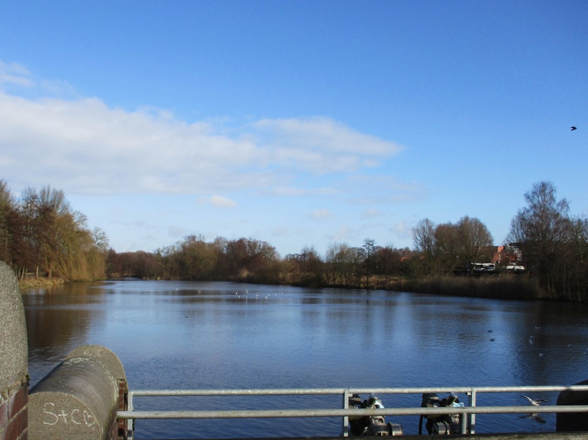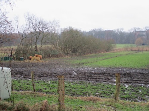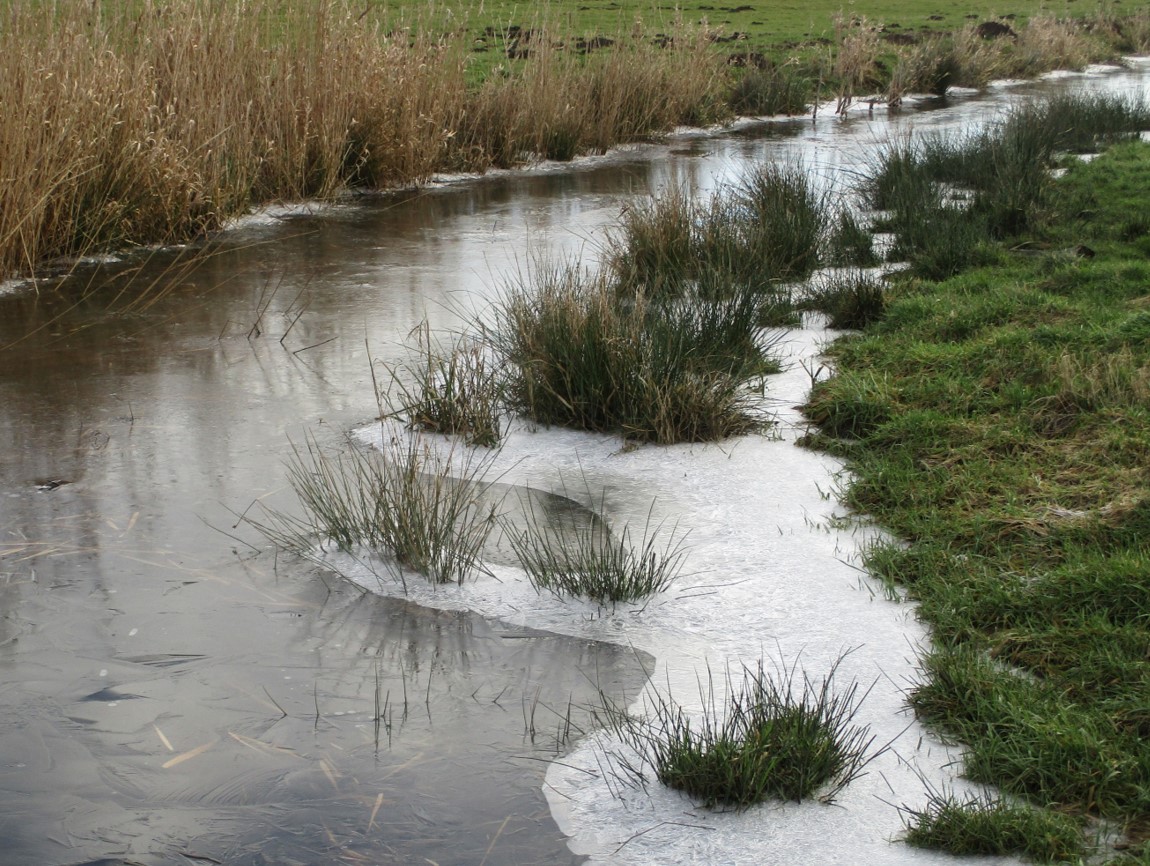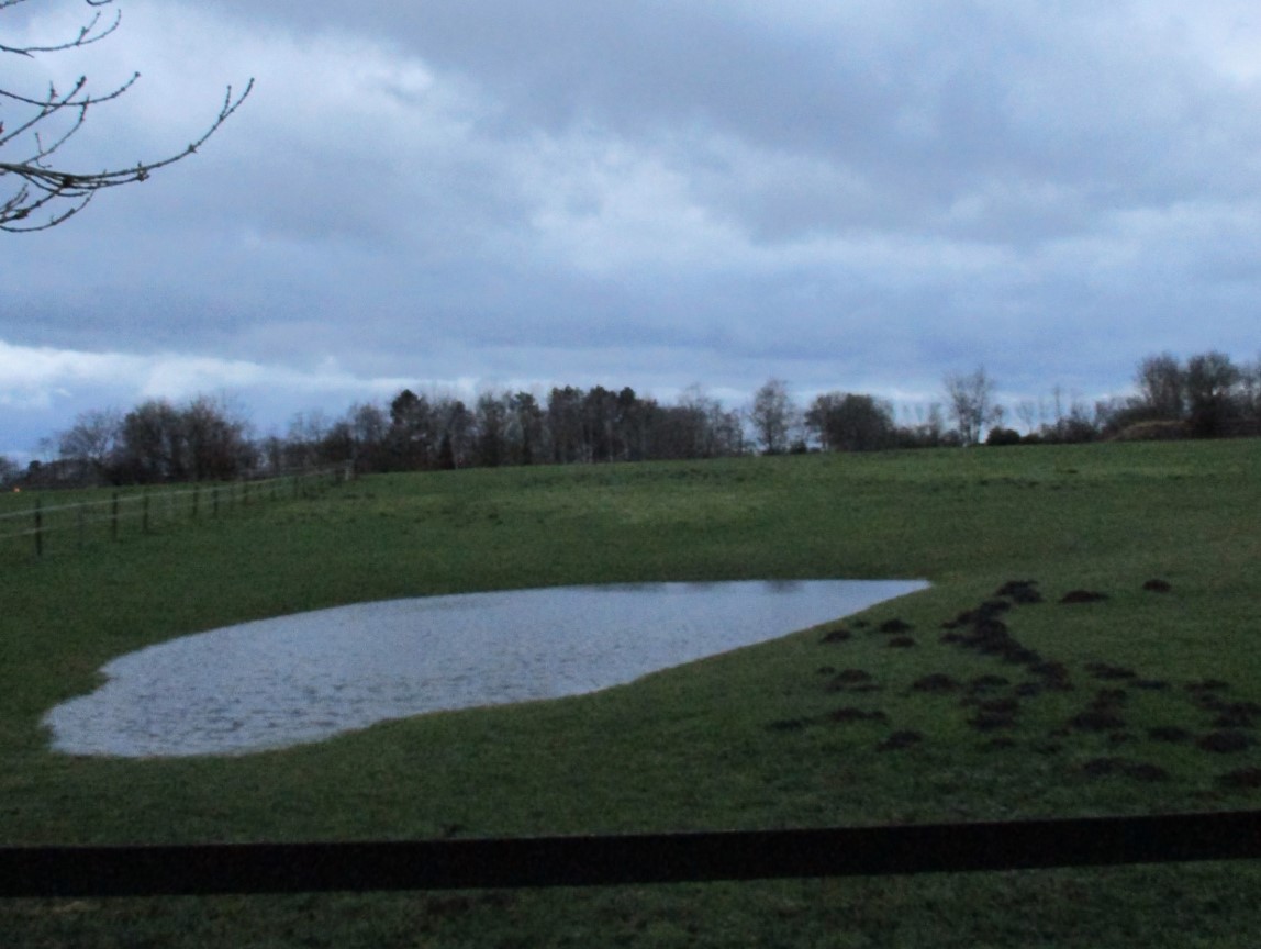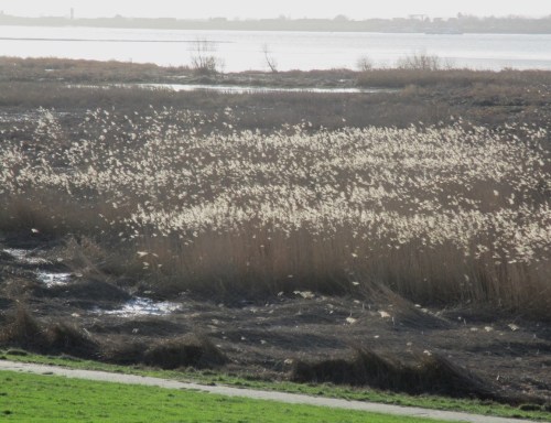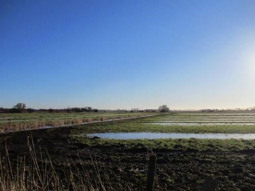 Das ist die neulich bereits mit Graugänsen vorgestellte, gut mit Wasser angestaute Ausgleichsfläche.