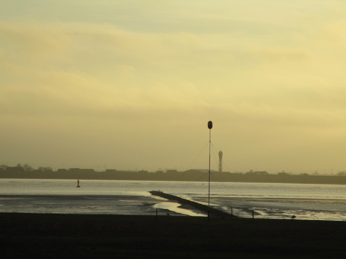 Fährmannssand – der Blick zur Elbe zeigte Tideniedrigwasser. Binnendeichs geht der Blick weit über die Marsch.