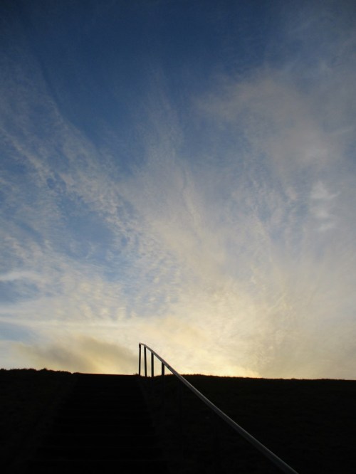 Falls sich jemand über den „Zaun“ wundert: Das ist das Treppengeländer, in so flachem Winkel schattierend, leicht irritierend.