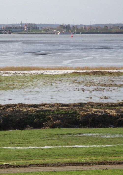 Auch hier – Blick vom Elbdeich nach Norden. Dazu gehört selbstverständlich, dass die Binnenentwässerung ebenfalls entsprechend gesteuert wird.