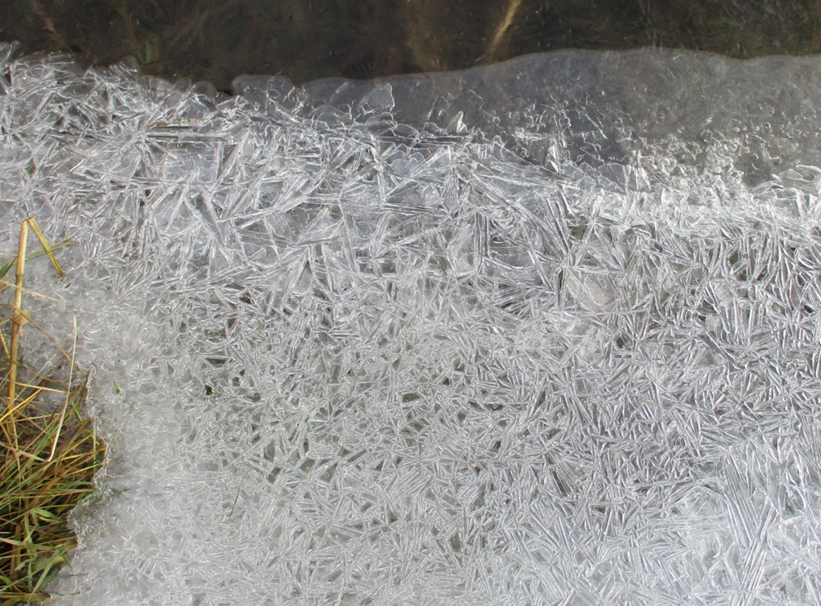 Fühl- vor / statt Geschmackstest: Fühlt sich rund und trocken an ??? Luftig ??? – Ah, nach kurzer Zeit löst sich das Testkügelchen schnellstmöglich, so gut wie ohne Rückstand zwischen den Fingern auf! Da muss in der Nacht ja eine spezielle Situation geherrscht haben, dass solch „Styropor“-Eiskügelchen allüberall herumliegen.