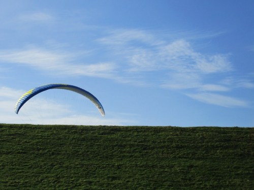 Klappt! Die Beine werde eine Weile über dem Boden schwebend gehalten. – So sind alle 3 Gleitschirmflieger für den Saisonstart gerüstet und eingestimmt.