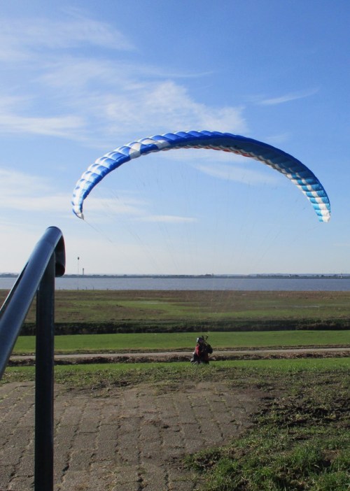 Vielleicht hätte ich statt „Unter Segeln“ besser „Drachen“ oder „Schirm“ schreiben sollen. Die echten und wahren Segel werden wir in nennenswerter Zahl erst wieder ab Ostern sehen, auf der Elbe – wenn die zur Zeit bootsleeren Yachthäfen wieder gefüllt sein werden. Aber das ist noch 8 Wochen hin . . .