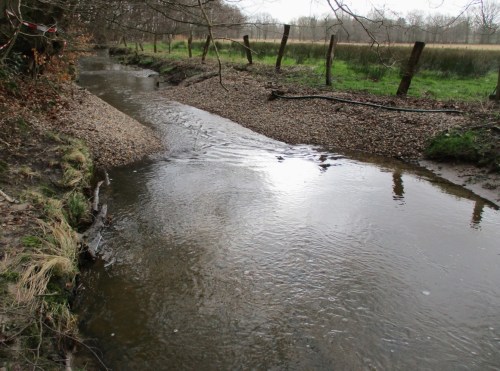 Der zweite Sattel Kies, schmaler Durchfluss – auch nach den Hochwässern (mehrfach und über längere Zeit bordvoll). – Dies ist ein kleiner Bach, und das zeigt er uns.