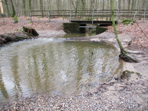 - So verabredeten wir auch unsere, hier bisher nicht erwähnte Kennenlernfragestellung, ob wir zur Wasserdruck- und Sandentlastung der Rönne im Übergang des Waldes zum Nutzland Kies schütten dürften. Ja!