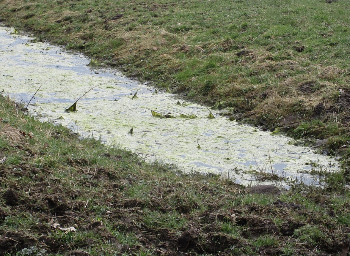 Vor Hetlingen zeigen sich entwickelnde „Segel / Fähnchen“, an Binsenstängeln gehaltene Algenmatten, den sinkenden Wasserspiegel der Feuchtwiesengräben.