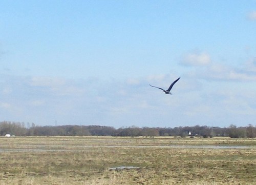 Anders als der Silberreiher startet dieser Graureiher schnell von uns weg – gehört offenbar nicht zu den Mensch-gewohnten, denen man fast die Hand geben kann.