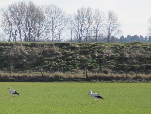 Während ich auf der Karte besenderter Störche in den vergangenen Tagen verfolgte, dass Westzieher ihre Nester erreicht, Ostzieher noch nicht mit der Nordreise begonnen haben, sind – vielleicht das Paar der Idenburg – „unsere“ Störche zurückgekommen. Nicht zum erstenmal sehe ich „die Idenburger“ so frühzeitig im Jahr.