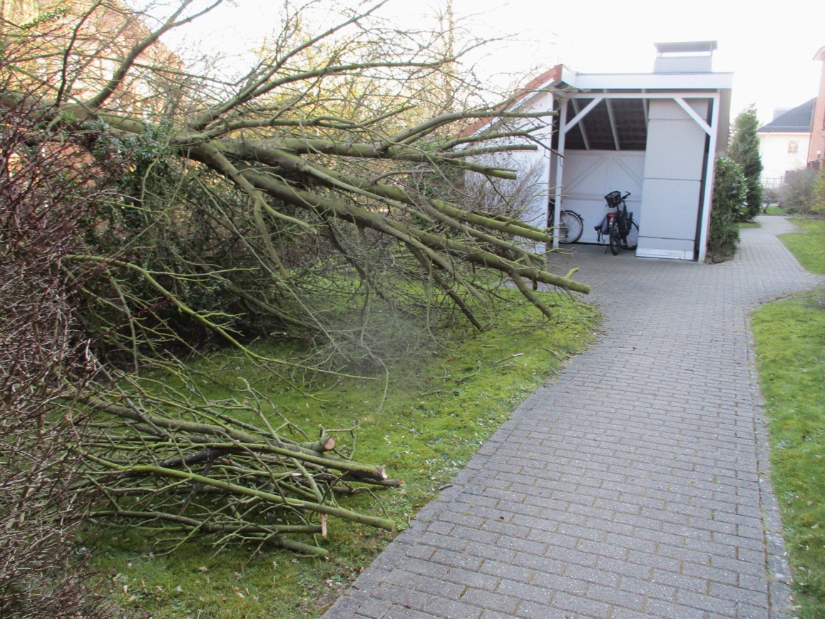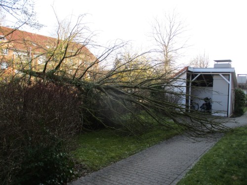 Nachdem die Weststürme und der Regen in Januar und Februar Vegetation und Böden ein lange nicht gekanntes Ereignis beschert hatten, hat gestern am frühen Nachmittag an unserer Grenze zu städtischem Gelände, lange achsiale Spielzone dahinter, der Wind aus Ost, Stärke 5, mit Sturmböen draufgesetzt, ein Werk vollbracht.