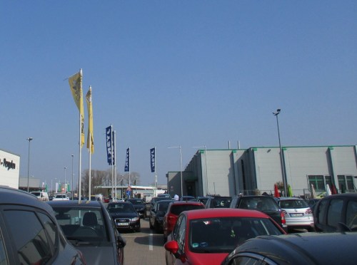 Eins von unendlich vielen Negativbeispielen für klare Zeichen, dass wir Menschen partout nichts dazu lernen wollen – Parkplatz Gewerbegebiet, könnte auch ein jeglicher anderer Stadtplatz sein, fast allüberall.