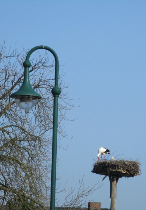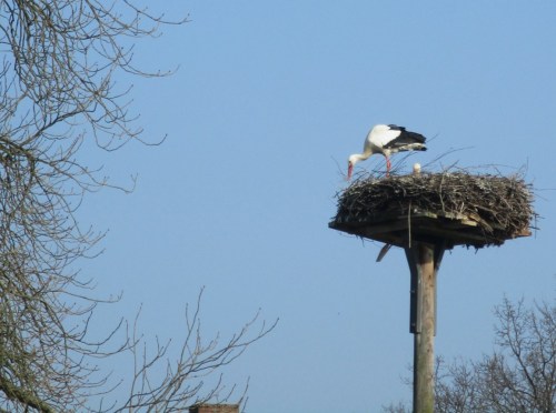 Sie sind schon eine Weile zurück. Nachbarn berichten, bereits Ende Februar wäre die Winterreise der Tangstedter Störche üblicher Weise durch Rückkehr aufs Nest abgeschlossen. Nach „Störche auf Reisen“ behaupte ich ohne jeden Beleg, dass es sich um Westzieher handelt. Die (wenigen) besenderten Westzieher sind im Norden angekommen, die „Ostzieher“ sind inzwischen auch – mehr oder weniger klar – gestartet.