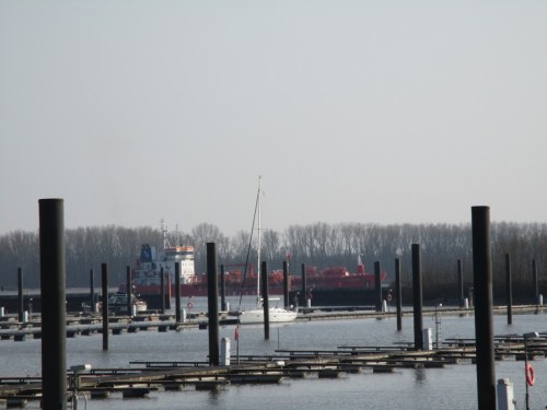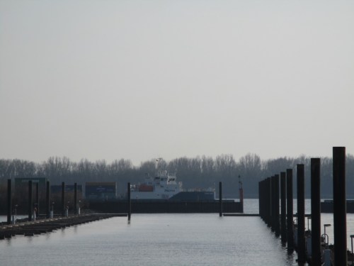 Kein Schiff in Sicht – Tidehochwasser, wer zu gucken weiss, erkennt schwach den (jetzt, vorübergehend) Unterwasser-Verlauf der langen Buhne auf dem Süßwasserwatt.