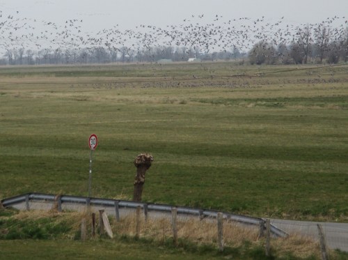 Keine „Ruhe über den Wassern“ finde ich dann bei der Vorbeifahrt Fährmannssand. Einmal abgesehen von den Lauten der Nonnengänse – der Bauer hat sein Knallwerkzeug aktiviert, in der Hoffnung, die Abertausende vom (kaum) spriessenden Gras zu vertreiben.
