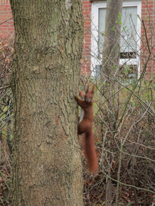 So ganz überraschend sind Eichhörnchenerlebnisse hier nicht, füttert doch ein Nachbar sehr aktiv mit Hasel- und Walnüssen.