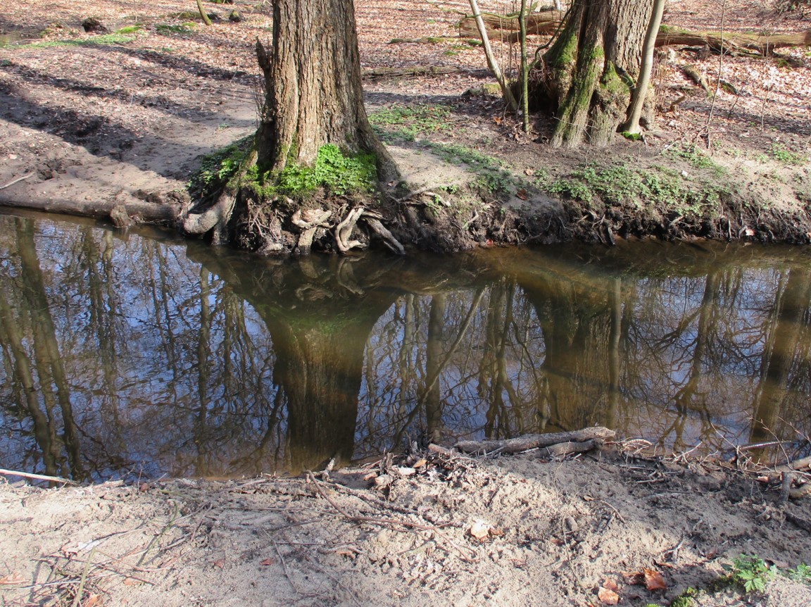 Das hat geklappt – aufgrund von Begradigung des Bachs hoch und trocken liegende früher aktive Mäander sind wieder durchflossen (gewesen).