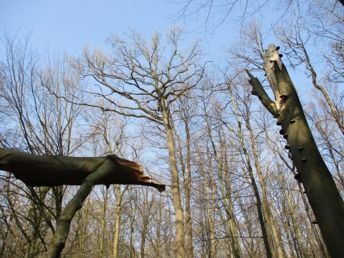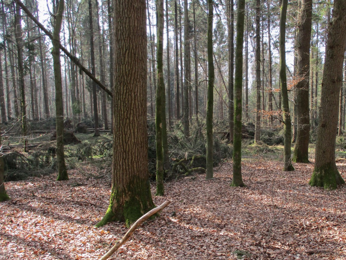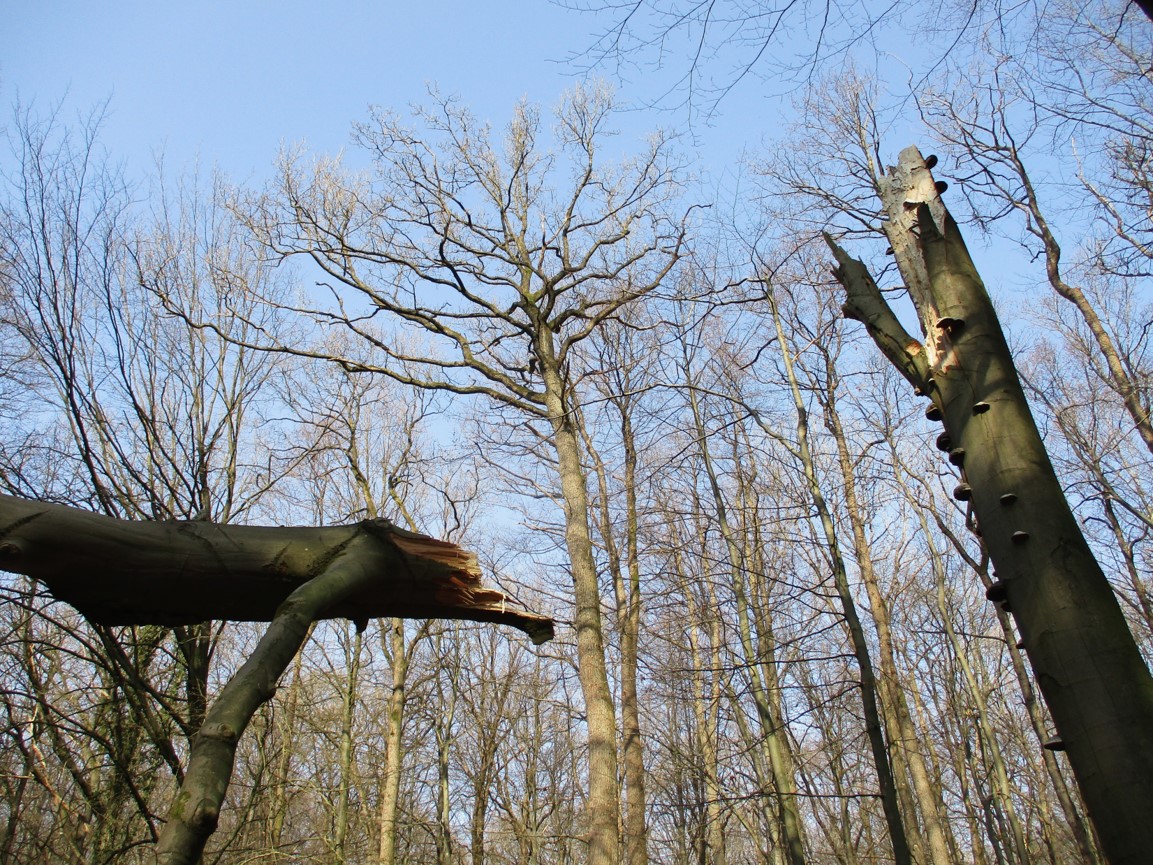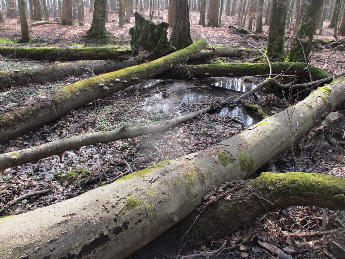 Es handelt sich hier um eine Waldpartie, die sich zum Naturwald entwickeln soll. Die Stürme, der Regen und unser Experiment bringen die Entwicklung voran.