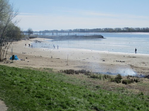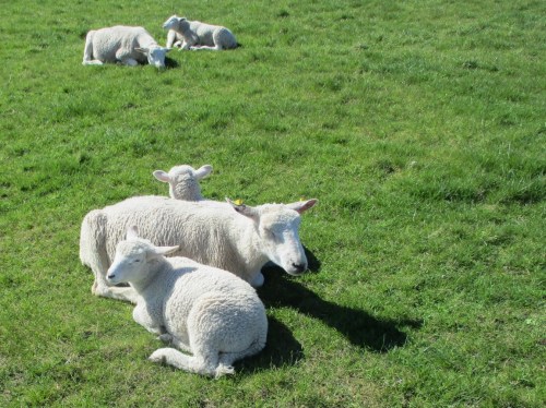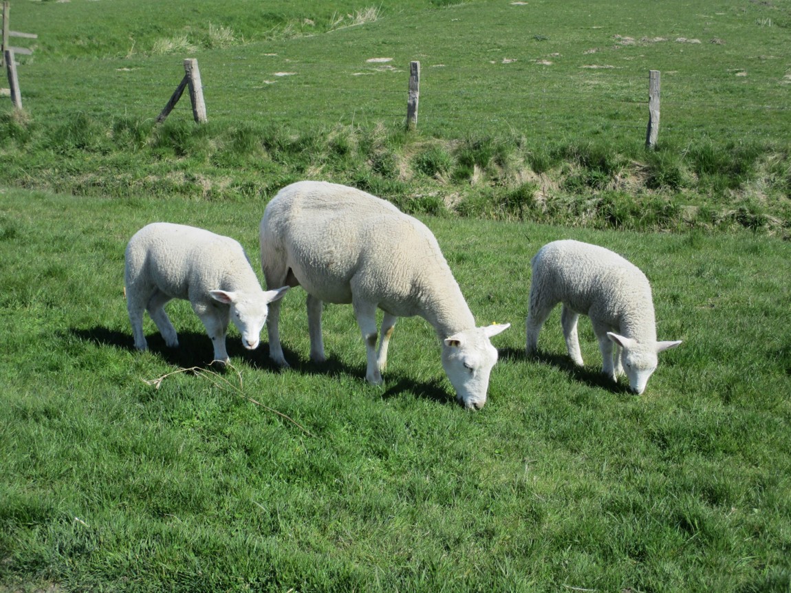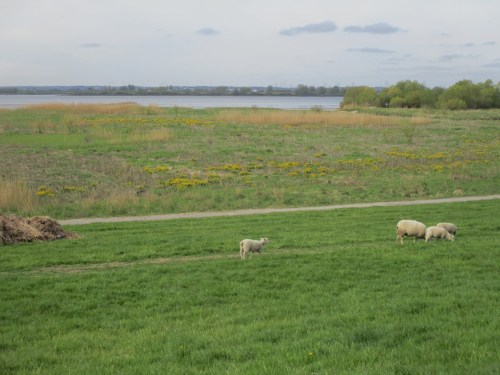 Nach Ostern wurden erste Schafgruppen mit Lämmern auf den Deich gelassen. Angesichts später Ostern sind die meisten Lämmer schon recht groß.