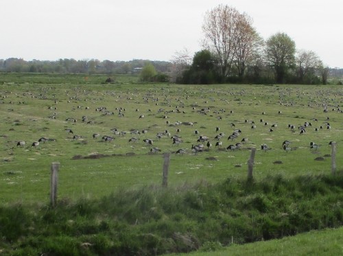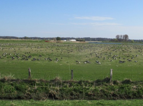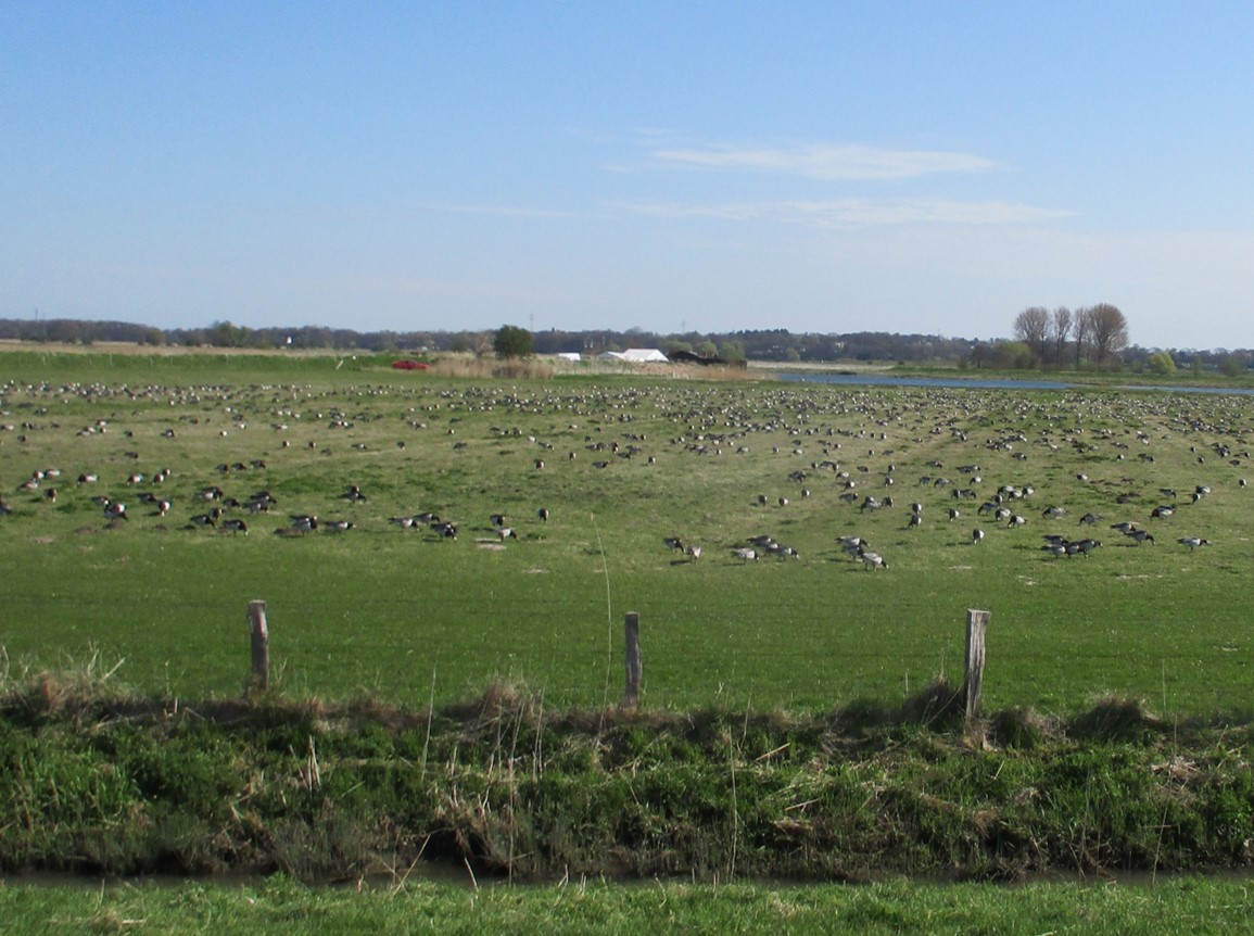 Aufs Ende voriger Woche zurückblickend, Kiebitzfest noch voraus – an der NABU Vogelstation laufen die Vorbereitungen, die Marschwiesen noch voller Nonnengänse.
