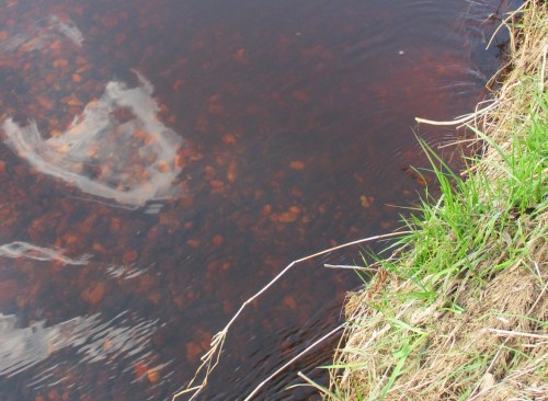 Während nach längerer Sonnenphase ohne Niederschlag die Abflüsse der Bäche Richtung Niedrigwasser tendieren und die Marschwiesen abtrocknen, halten die Moore das Wasser stärker.