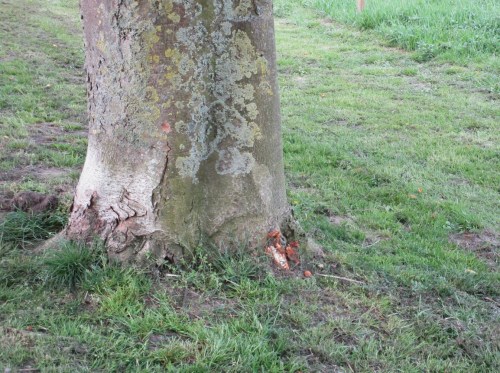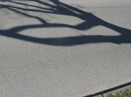 Schatten spenden z.B. Bäume, hier eine Eiche – sehe ich da Urban Art, einen Fisch?