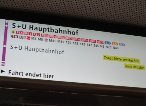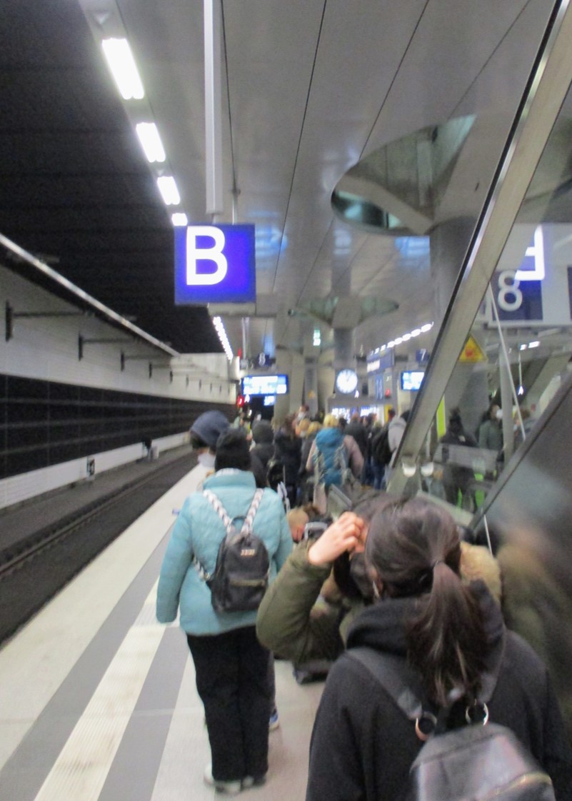 Gedanken an die Anreise flackern auf … – Zum Glück handelt es sich bei dem Knäuel Menschen im Wesentlichen um Wartende auf einen Flixtrain. (Der kommt dann auch noch.)