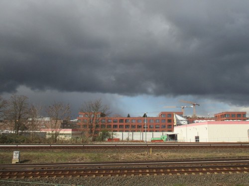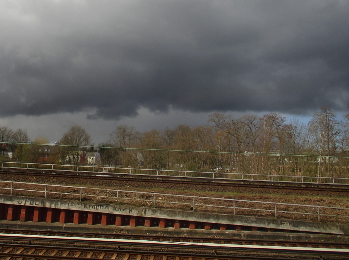 Und schon fahren wir nach Altona ein. – Oha – welches der Wetter, rechts Sonne, links Wolkenbruch, erwartet uns denn weiterhin?