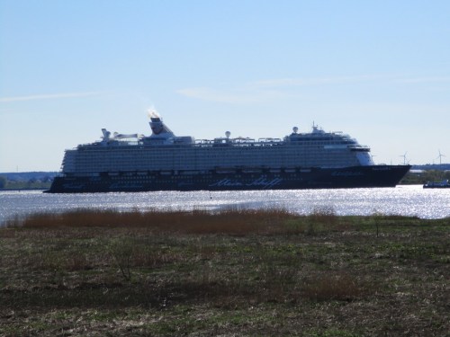 Also, mein Schiff ist diese Sorte Schiff nicht. Zwar sieht es noch ein Bisschen danach aus, aber die Anklänge an die Riesenkeksboxen, Menschen in Intensivhaltung, sind doch erheblich. Aus den Schloten kommt auch nichts Vielversprechendes …