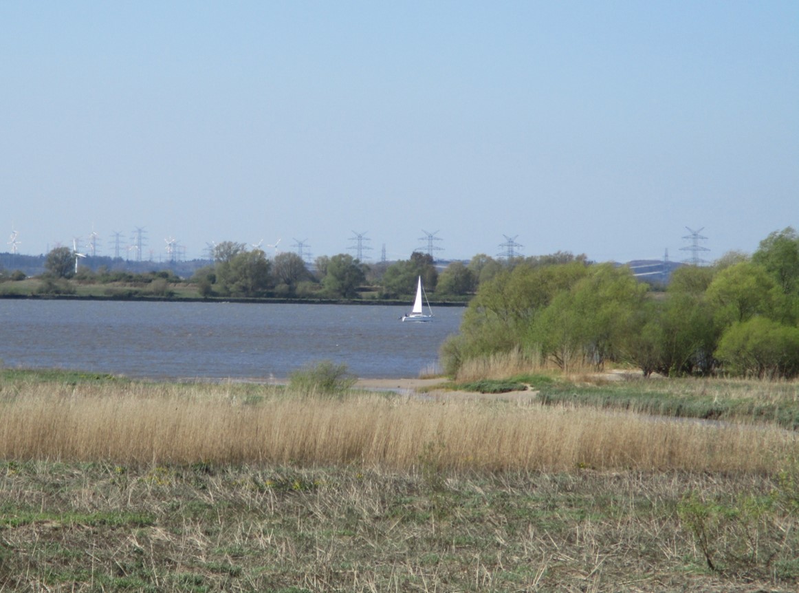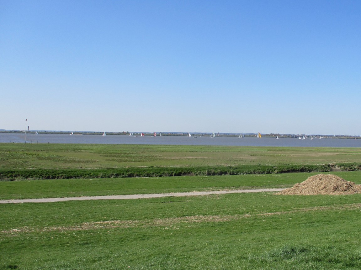 Blick über den Elbdeich Hetlingen – ich hatte mich getäuscht in der Annahme, man werde an der Lühemündung wenden – hier verschwindet der letzte Segler Richtung Stade.