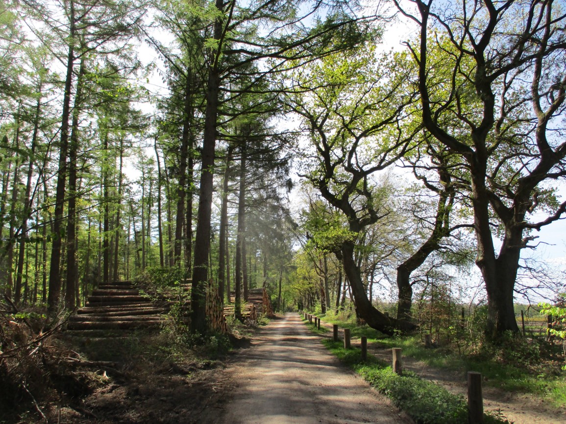 Zurück geht`s über den Forst Klövensteen – hier eine Randpartie. Der alte Kiefernforst wird ausgiebig genutzt, auf dem Weg zum Mischwald, alte Knorreichen säumen den Weg.