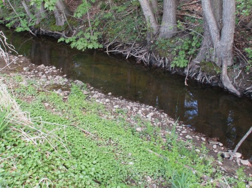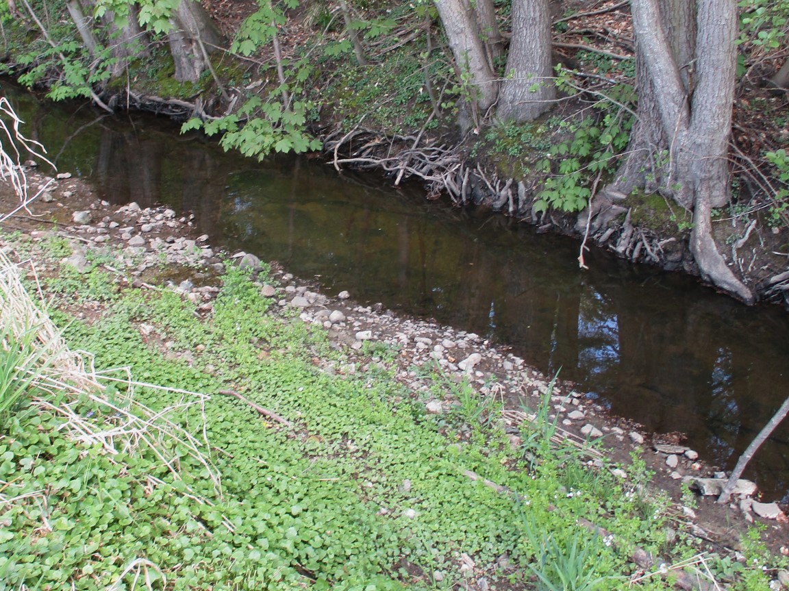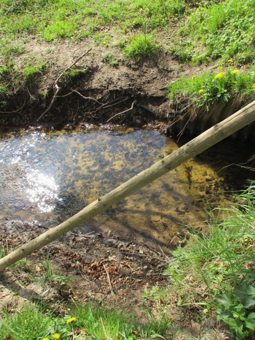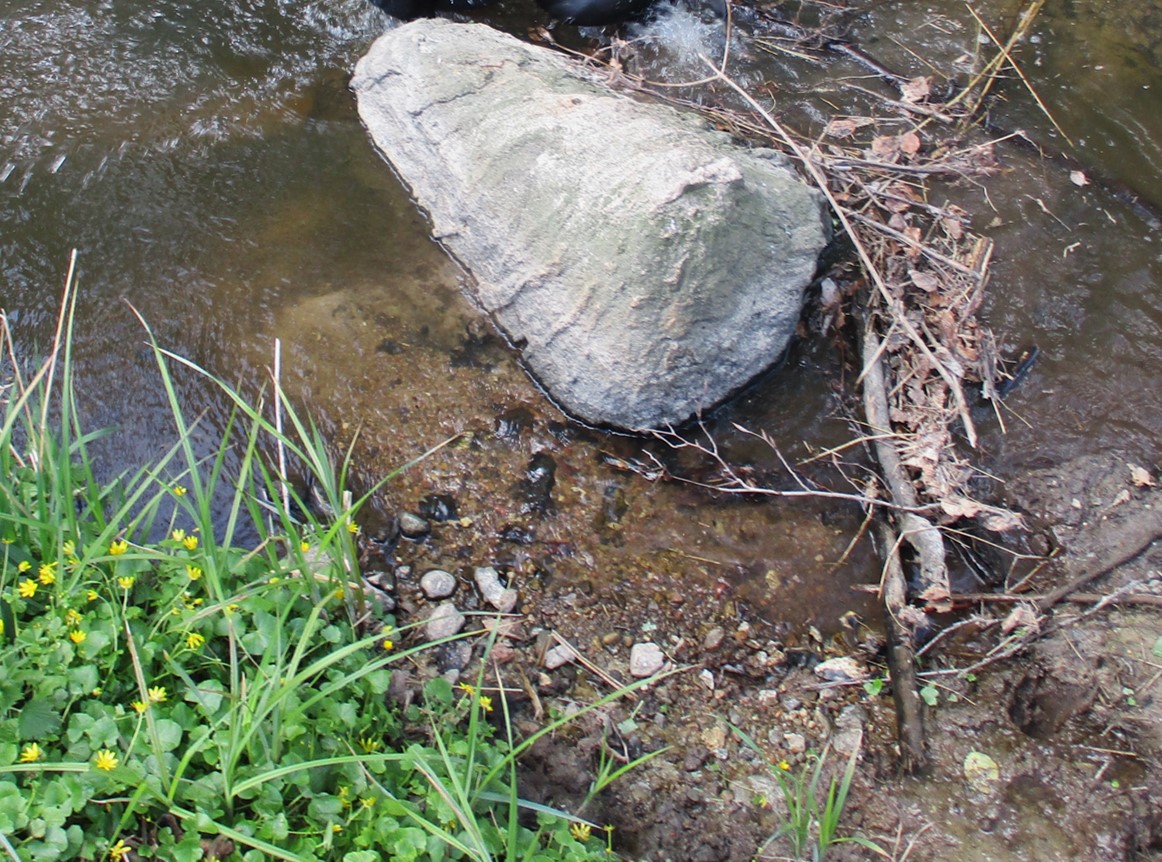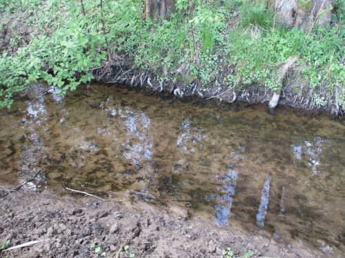 Strukturlose Sohle, sandig-schlammig, wo Moränengestein freigewaschen liegen sollte / in anderer Lage und Position des Bachs früher auch lag.