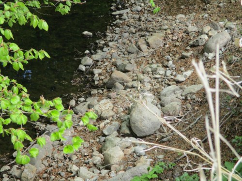 Wer im Sandig-Schlammigen ein gutes Werk tut, kann auch „eigene“ Moränensteine, hier: Kies, frei präparieren.