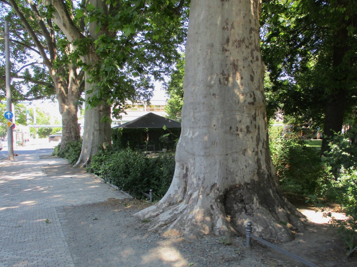 Man muss schon ganz schön hochstarren, um die Nistkästen überhaupt zu entdecken.
