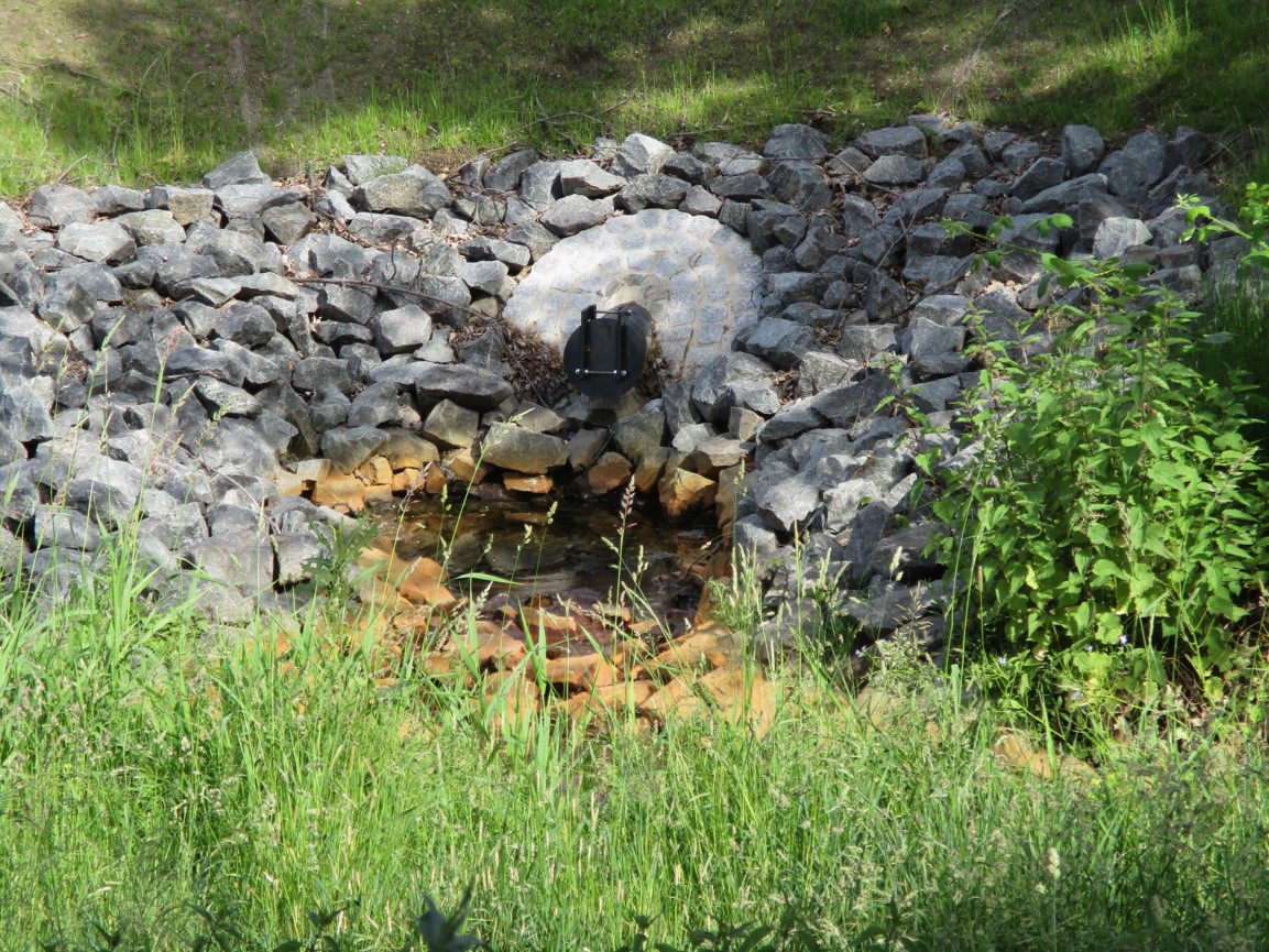 Vermutlich durch Baumaßnahmen gestörter Bodenwasserhaushalt äussert sich durch Zeichen mindestens zeitweise intensiven, punktuellen Eiseneintrags. – Dass man gegen schädliche Eisenauswirkungen etwas tun kann, ist hier im Blog hinreichend beschrieben.