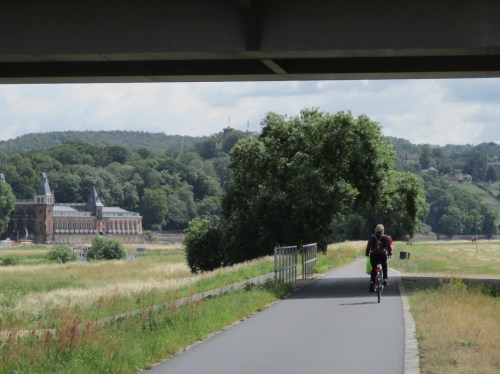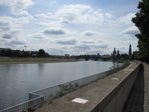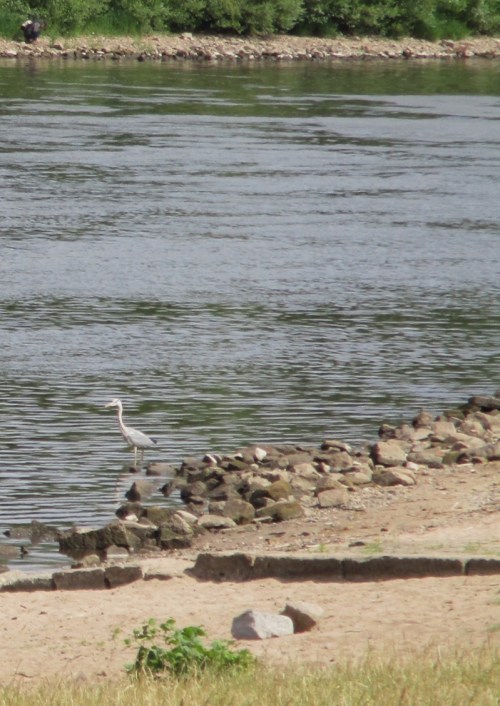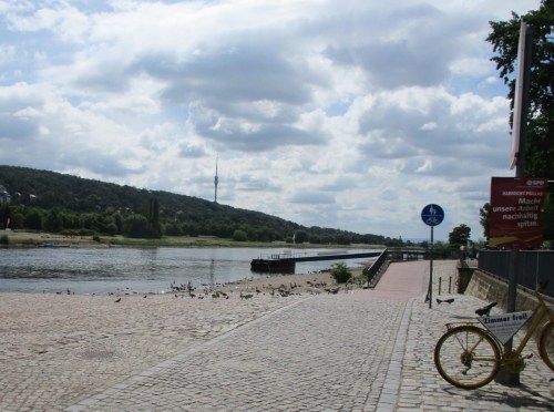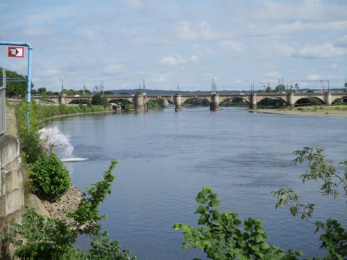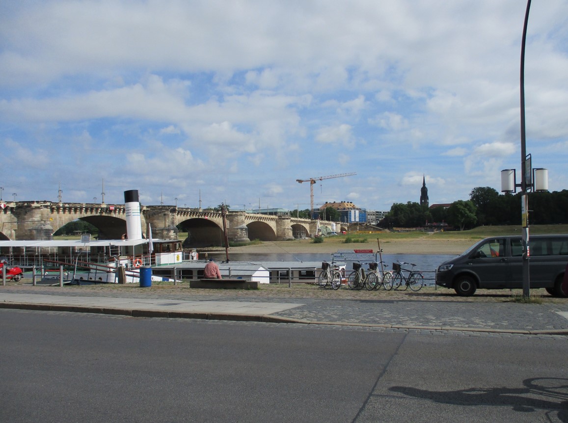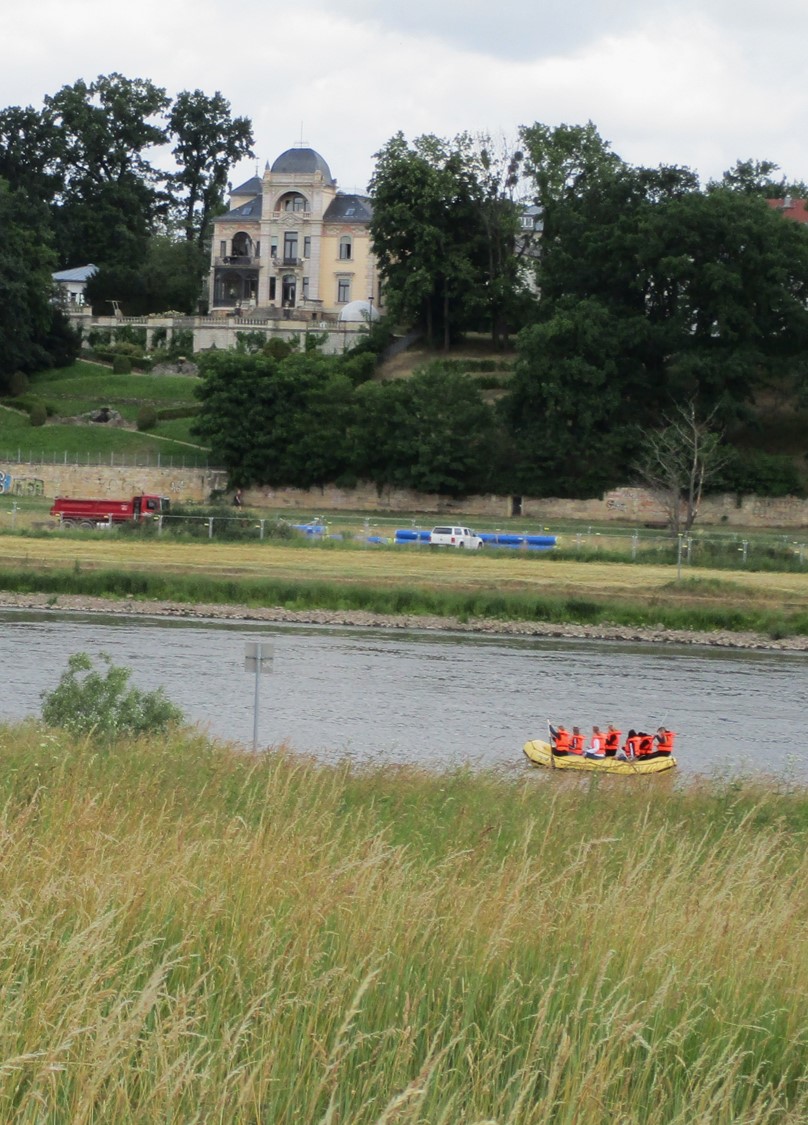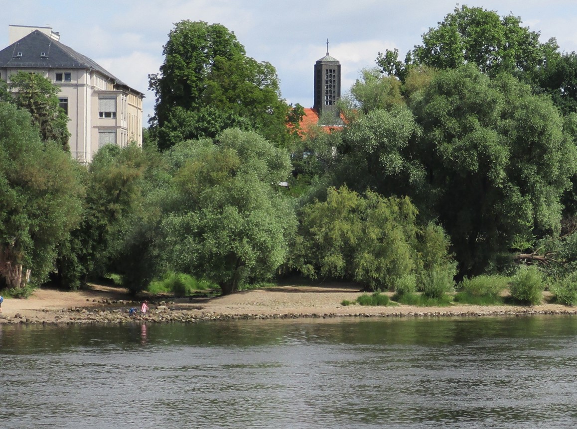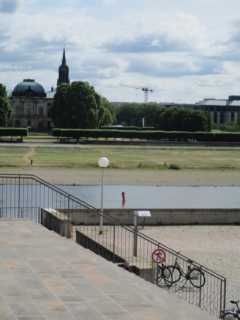 Trockene Prießnitzmündung? Das war Optik – eine dicke Packung Wasserbausteine versperrte die Sicht. Das Wasser verläuft sich zwischen den Steinen Richtung Elbe.
