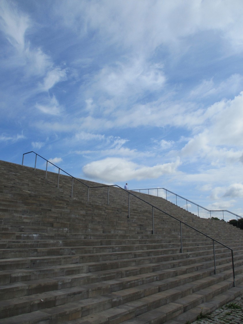 Hoch, da oben! Die steile Treppe erklimmt man am Besten nicht senkrecht, sondern geht locker diagonal – je nach Einstellung.