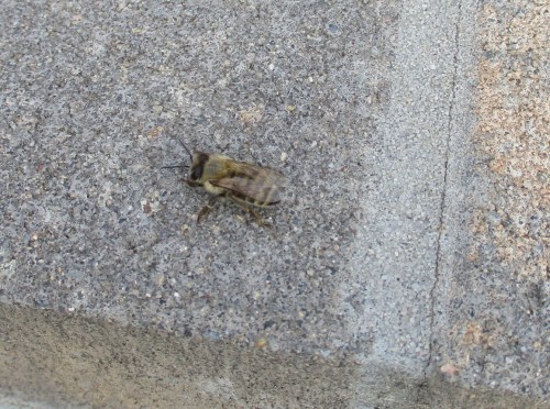 Solch Felsbauwerk in Morgenfrische wird gern von Insekten, z.B. dieser Wildbiene und etlichen Artgenossen ringsum, zum Aufwärmen genutzt.